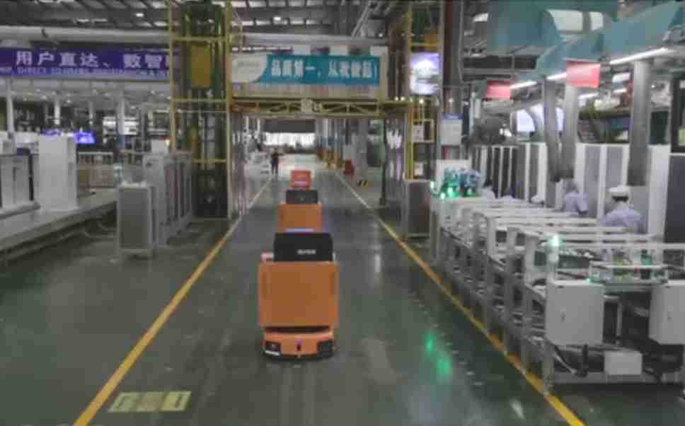 为车载冰箱物流配送打造的智能解决方案,,包含产中物流通过潜伏举升AMR搬运至线边,,产后成品物流智能仓储,,,流程包含产中物流智能齐套入库,,线边安灯叫料AMR智能配送至线边,,,成品入库、、出库,,,通过无人堆高车机器人,,,,智能仓储管理替代人工作业管理,,,实现更高存储、、、、更高效率、、、、更具柔性化的解决方案。。